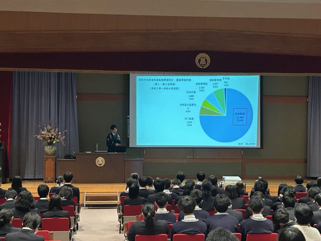 3月4日(水)、自転車ルール講習会を行いました。富山中央警察署交通課の方を講師として招聘し、講話をいただきました。