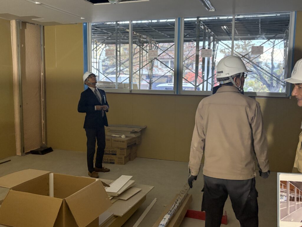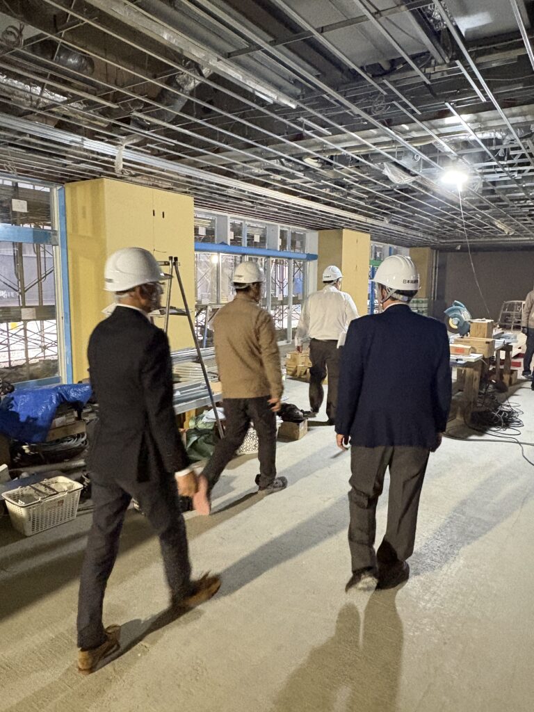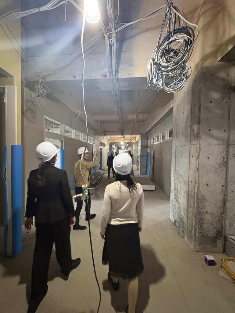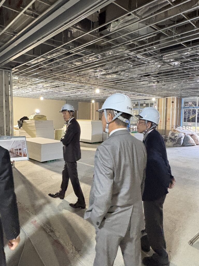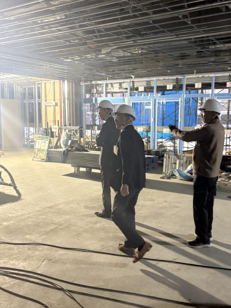 来年完成予定の新校舎。内部の工事を視察しました。
