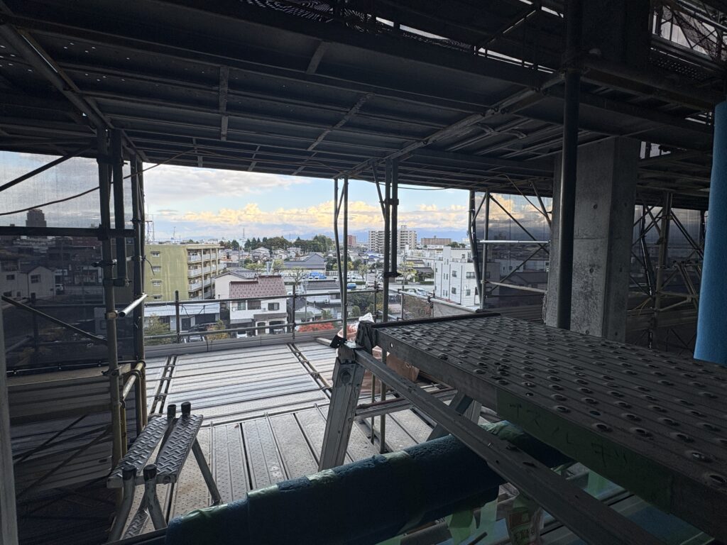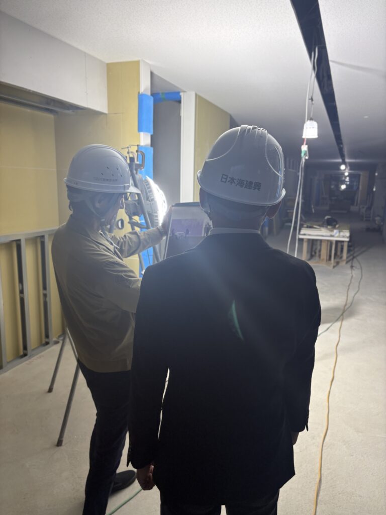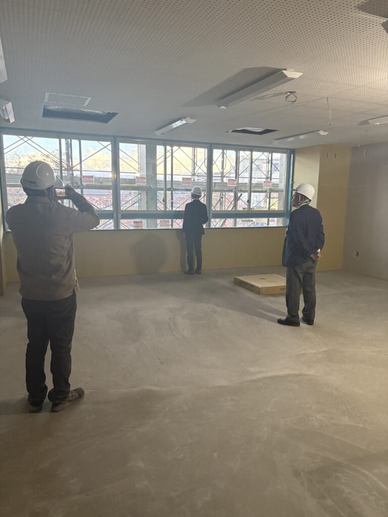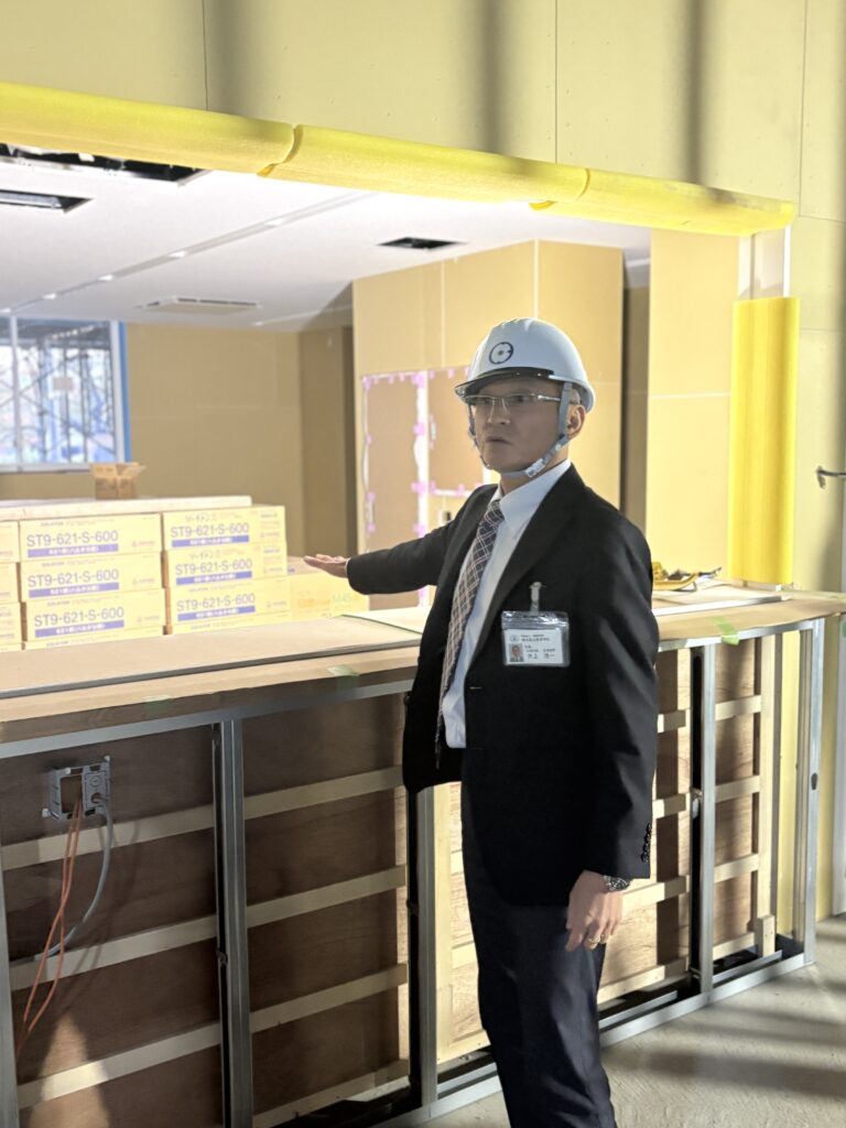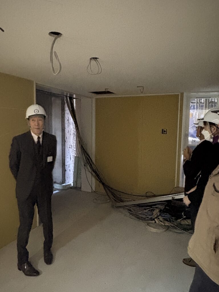 来年完成予定の新校舎。内部の工事を視察しました。